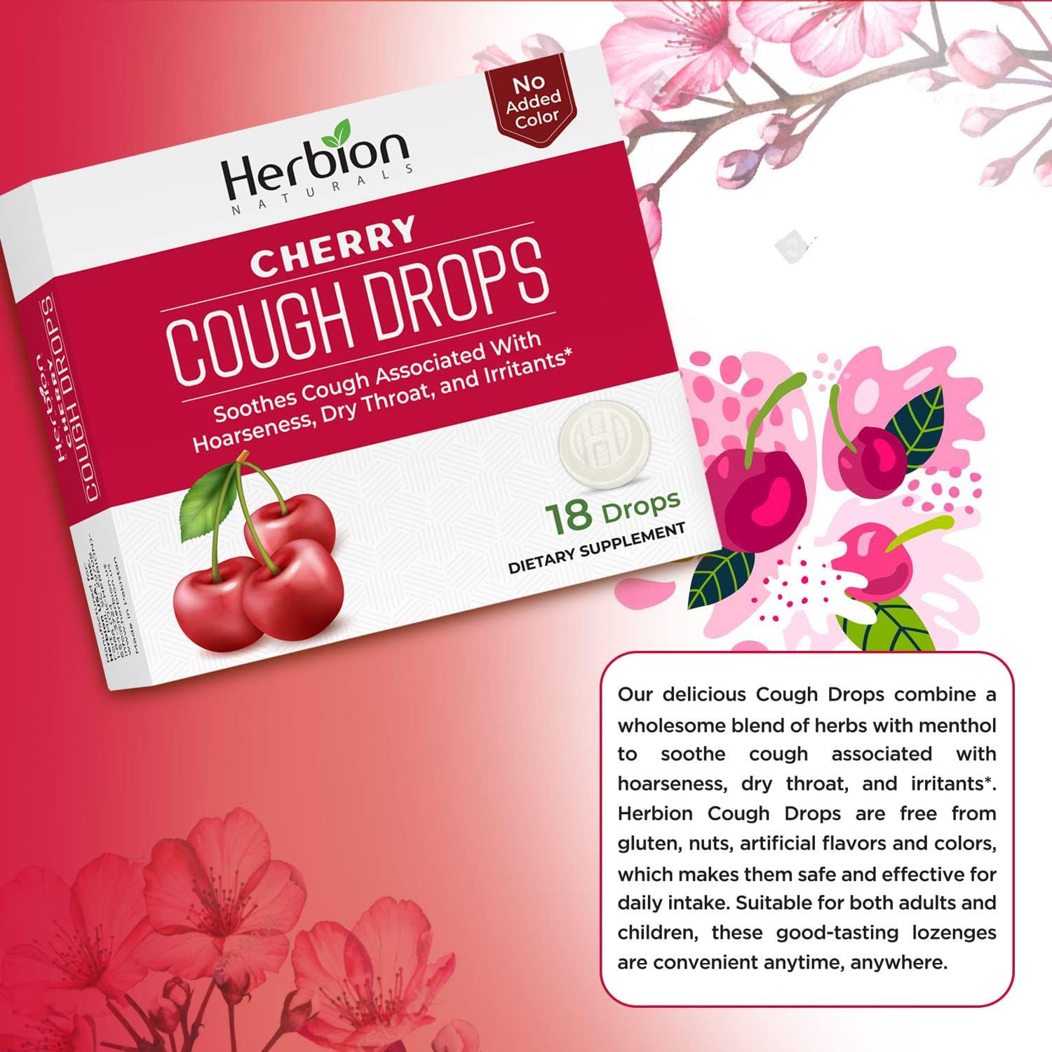 Amazon Com Herbion Naturals Cough Drops With Natural Cherry Flavor Dietary Supplement Soothes Cough For Adults And Children Over 6 Years 18 Drops No Artificial Flavor No Added Color Health Household